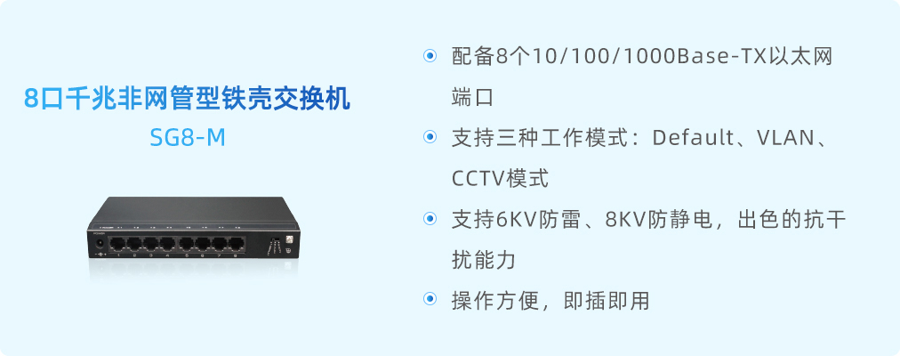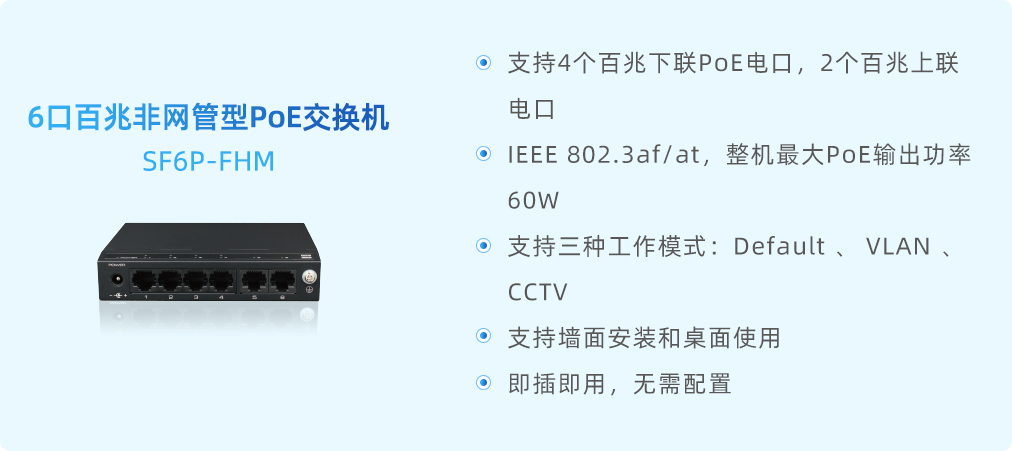 該系列交換機(jī)支持Default、VLAN(虛擬局域網(wǎng))和CCTV三種工作模式,這種多樣化的工作模式為用戶提供了極大的靈活性和便捷性。Default模式所有端口均可自由通信,適用于簡(jiǎn)單網(wǎng)絡(luò)環(huán)境,無需復(fù)雜配置即可快速搭建;VLAN模式下聯(lián)端口相互隔離,但可與上聯(lián)端口通信,能夠有效隔離不同部門的網(wǎng)絡(luò)流量,提升網(wǎng)絡(luò)的安全性和管理效率;而CCTV模式則是針對(duì)安防監(jiān)控系統(tǒng)的特殊需求定制,通過一鍵設(shè)置即可將下聯(lián)端口速率調(diào)整為10M,并延長(zhǎng)最遠(yuǎn)傳輸距離至250米,這一特性尤其適合大規(guī)模、遠(yuǎn)距離的監(jiān)控網(wǎng)絡(luò)部署。