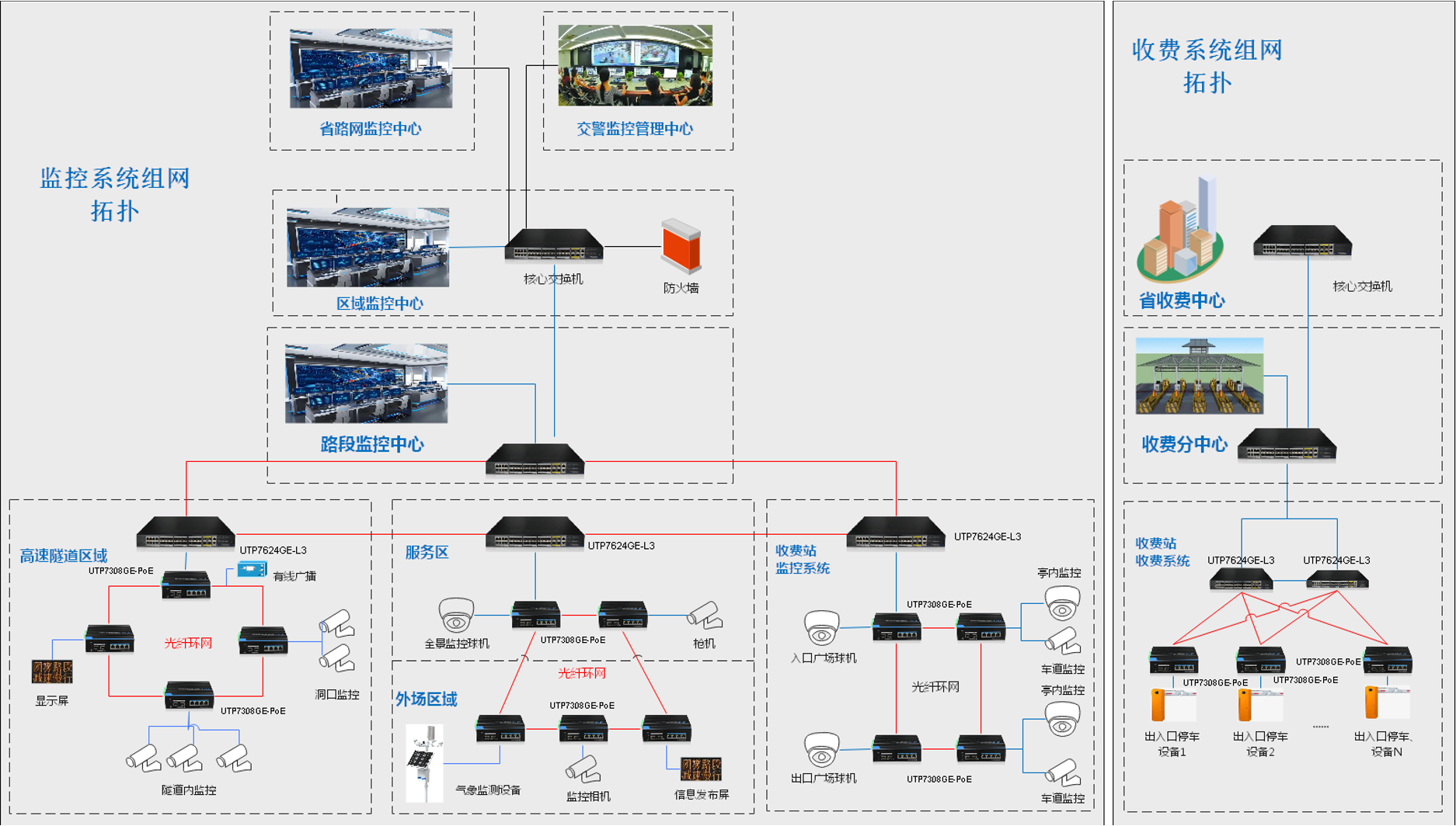 監(jiān)控系統(tǒng)是要通過接入網(wǎng)絡(luò)把部署在高速公路各路段、橋梁、隧道等處的監(jiān)控?cái)z像頭入監(jiān)控中心,隧道、道路外場(chǎng)等環(huán)境復(fù)雜,通信距離長(zhǎng),電磁干擾強(qiáng)烈,需確保數(shù)據(jù)傳輸通暢。