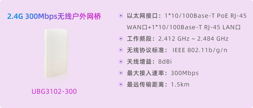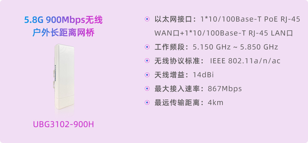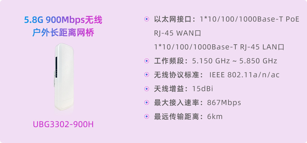 無線網橋作為現(xiàn)代通信技術的佼佼者,專為視頻監(jiān)控與無線接入打造,已在多領域展現(xiàn)獨特優(yōu)勢與廣闊前景。通過集成高增益定向天線,它突破了傳統(tǒng)線纜限制,提供高效、穩(wěn)定、可靠的遠程連接方案。優(yōu)特普無線網橋高性能、高增益、高靈敏度、高帶寬,顯著提升無線傳輸性能與穩(wěn)定性,廣泛應用于園區(qū)、景區(qū)、工廠、碼頭、工地及停車場等遠距離數(shù)據傳輸場景。