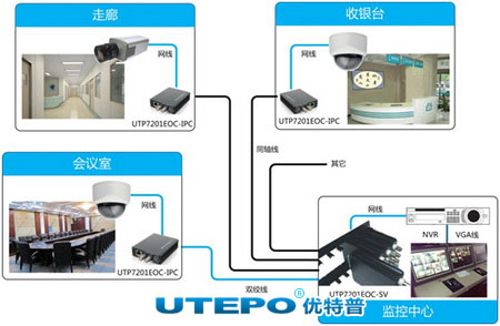 網(wǎng)電速聯(lián)同軸線網(wǎng)絡(luò)延長設(shè)備UTP7201EOC應(yīng)用在廣西桂林中西醫(yī)結(jié)合醫(yī)院的視頻監(jiān)控系統(tǒng)中,通過同軸線進(jìn)行網(wǎng)絡(luò)高清信號的傳輸,實(shí)現(xiàn)了該醫(yī)院監(jiān)控系統(tǒng)從模擬到網(wǎng)絡(luò)的無縫升級,解決了工程改造的難題。該方案的成功應(yīng)用是當(dāng)前建筑中尚大量存在的模擬監(jiān)控系統(tǒng)向網(wǎng)絡(luò)高清進(jìn)行改造升級的一個典型案例。