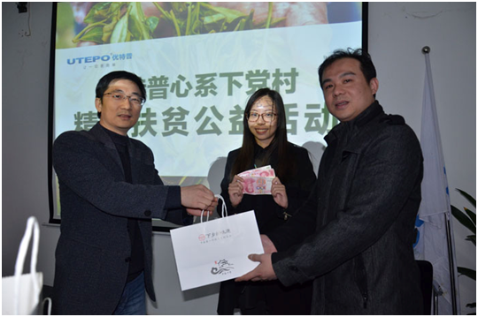優(yōu)特普為響應(yīng)我國(guó)中央扶貧開(kāi)發(fā)工作會(huì)議的會(huì)議精神。去年12月優(yōu)特普在下黨村承包了數(shù)畝茶園并正式啟動(dòng)參與精準(zhǔn)扶貧工作中來(lái),并且優(yōu)特普黨支部于1月26日在深圳總部舉辦“優(yōu)特普心系下黨村——精準(zhǔn)扶貧公益活動(dòng)”。