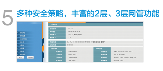 產(chǎn)品支持端口管理、QoS、多播、LACP、RSTP和靜態(tài)路由、RIP、OSPF等2層和3層網(wǎng)絡(luò)及PoE控制Web管理功能,滿足企業(yè)組網(wǎng)對(duì)高安全、高智能的管理需求。