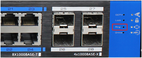 優(yōu)特普一鍵智能交換機,無需進行繁瑣的后臺設(shè)置,只要按下交換機面板上的環(huán)網(wǎng)功能(Ring)按鍵就能一鍵啟動“快速環(huán)網(wǎng)”功能。開啟“一鍵環(huán)網(wǎng)”后,交換機自動啟動快速環(huán)網(wǎng)組1(25、26端口環(huán)網(wǎng)組)。