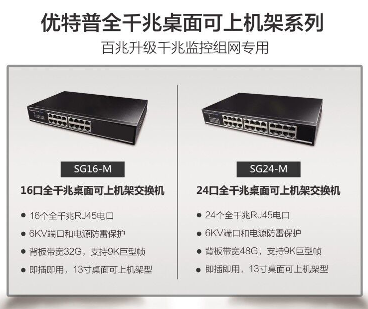 優(yōu)特普公司針對(duì)當(dāng)前網(wǎng)絡(luò)建設(shè)及應(yīng)用痛點(diǎn),結(jié)合中小型企業(yè)千兆組網(wǎng)及監(jiān)控組網(wǎng)應(yīng)用特點(diǎn),最新推出了16/24口全千兆防雷工程專用交換機(jī)。該產(chǎn)品系列支持學(xué)校模式、監(jiān)控模式、企業(yè)模式、安全模式和網(wǎng)絡(luò)隔離五種工作模式的一鍵切換。