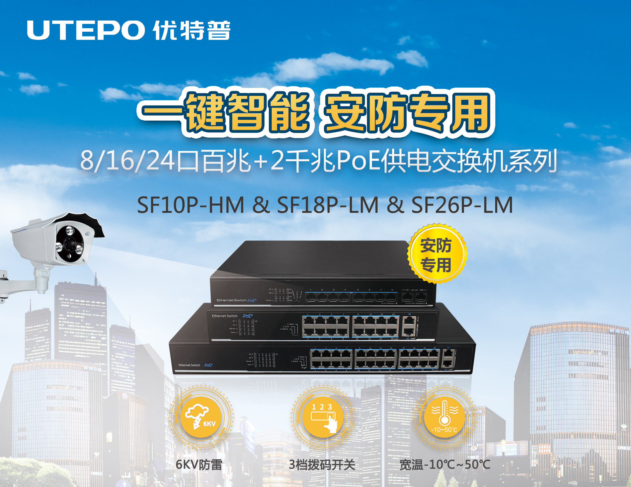 備受關(guān)注的還有優(yōu)特普春季最新推出的8/16/24口百兆+2千兆PoE供電交換機(jī)系列,該系列產(chǎn)品專為安防網(wǎng)絡(luò)監(jiān)控而設(shè)計(jì),支持6KV防雷,一鍵切換為標(biāo)準(zhǔn)交換、VLAN和CCTV三種模式。該系列產(chǎn)品具有的PoE Watchdog功能支持網(wǎng)絡(luò)攝像機(jī)掉線自動(dòng)檢測(cè)、自動(dòng)重啟,大大節(jié)省了系統(tǒng)維護(hù)時(shí)間及成本。該系列產(chǎn)品不僅操作簡(jiǎn)單,而且能有效抑制網(wǎng)絡(luò)風(fēng)暴,防止病毒傳播和網(wǎng)絡(luò)攻擊,能充分滿足視頻監(jiān)控和以太網(wǎng)項(xiàng)目組網(wǎng)需要。