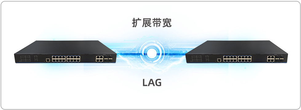 通過鏈路聚合(LAG),用戶可在兩個交換機(jī)之間建立多條鏈路以達(dá)到擴(kuò)展帶寬的目的,實(shí)現(xiàn)均攤模式。同時,提供鏈路冗余備份,當(dāng)該組某個成員端口鏈路出現(xiàn)故障時,可以最大限度地減輕網(wǎng)絡(luò)故障。