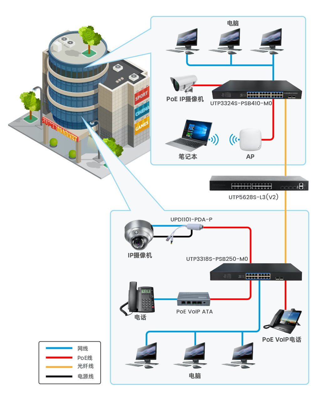 優(yōu)特普全千兆PoE交換機(jī)系列提供16/24個(gè)10/100/1000Base-T PoE供電端口,每個(gè)端口提供高達(dá)30W PoE功率,將電源和數(shù)據(jù)交換集成到一個(gè)單元中,使網(wǎng)絡(luò)設(shè)備擺脫了電源插座位置的限制和額外的交流布線,從而消除了部署的時(shí)間和成本。