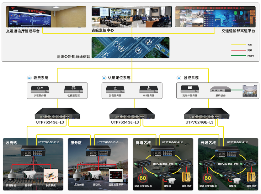 通過對交通業(yè)務狀況的深入分析,優(yōu)特普打造了針對交通復雜環(huán)境,基于PoE供電、PoE看門狗、永久PoE技術、智能自愈等技術工業(yè)級交換機,通過以太網線纜為各終端供電,實現網絡和供電一體化。
