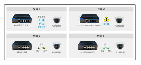 PoE Watchdog(看門狗),實現PoE攝像機掉線自動偵測、自動重啟,減少系統(tǒng)維護成本。