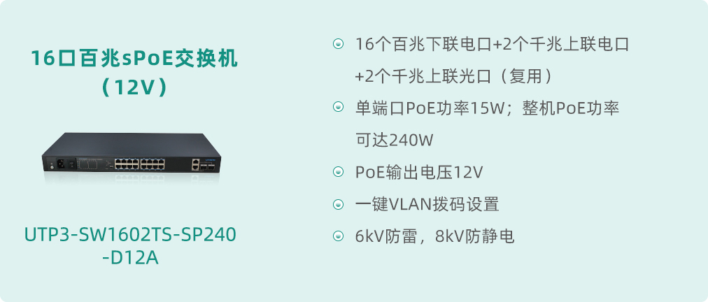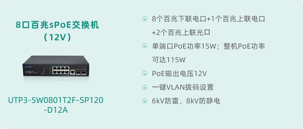 在當(dāng)今數(shù)字化、智能化的時代背景下,網(wǎng)絡(luò)通信設(shè)備作為信息傳輸?shù)幕湫阅芘c穩(wěn)定性直接關(guān)系到各類智能終端設(shè)備的運行效率與用戶體驗。尤其是在構(gòu)建智慧樓宇、智能家居、智慧安防等場景中,以太網(wǎng)供電(Power over Ethernet,簡稱PoE)技術(shù)憑借其便捷性、高效性,成為了連接各類智能終端設(shè)備的優(yōu)選方案。針對標(biāo)準(zhǔn)PoE未能滿足的特定市場需求,優(yōu)特普專門推出sPoE系列簡易版以太網(wǎng)供電交換機進行市場補充和完善,如門禁系統(tǒng)中的可視對講機等一些需求低壓供電的終端設(shè)備,為智慧化建設(shè)帶來了全新的、更有效的解決方案。