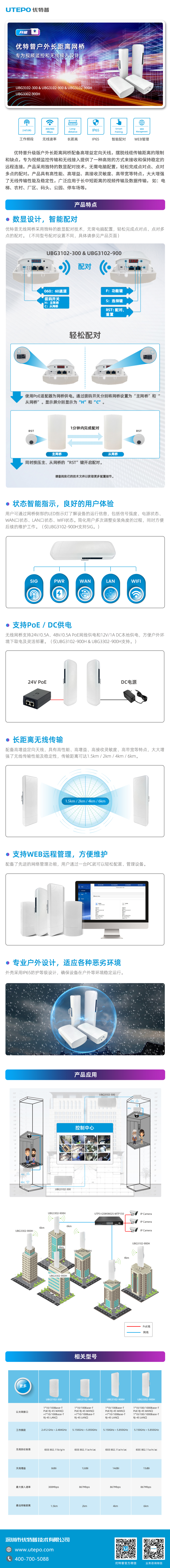 ● UBG3102-300:8dBi 增益 2*2MIMO 天線,最遠(yuǎn) 1.5km 傳輸距離