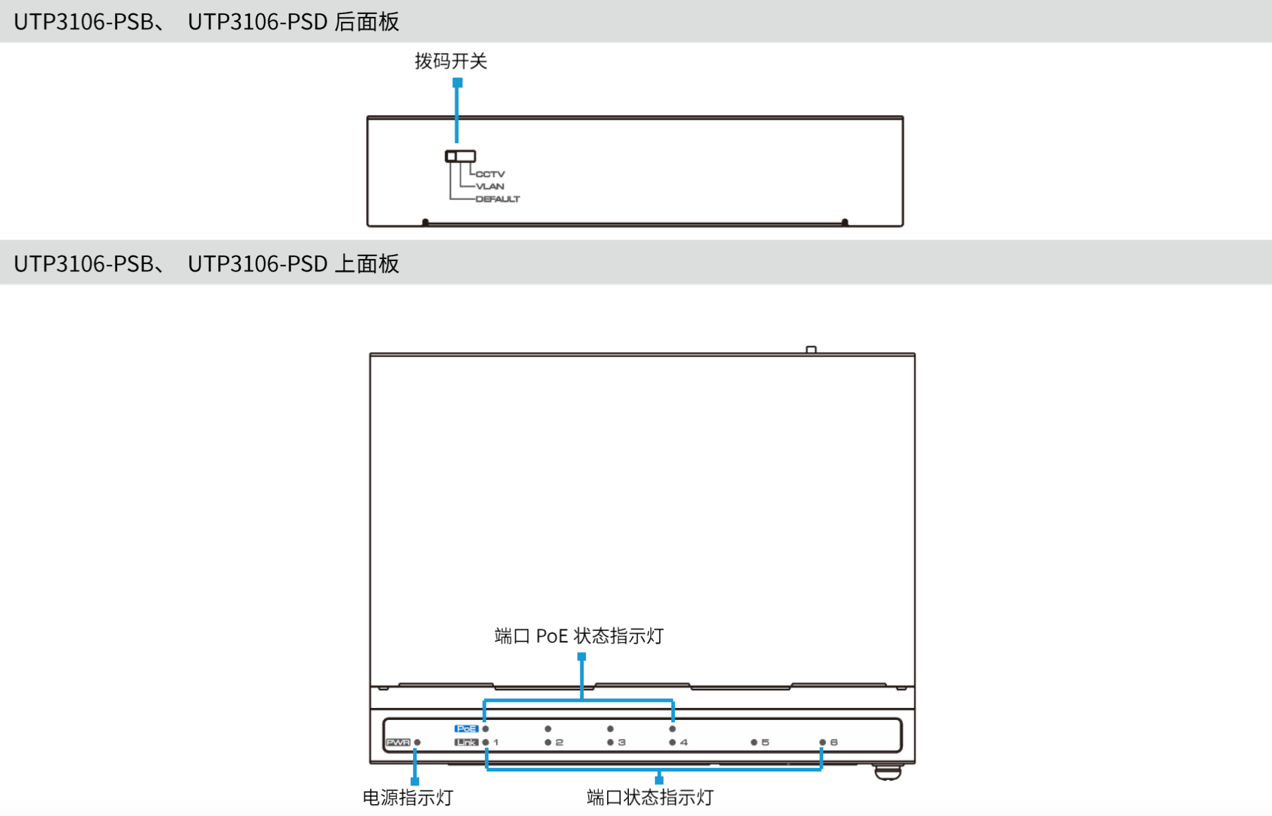 ● UTP3106-PSB / UTP3106-PSD:6口全百兆PoE交換機