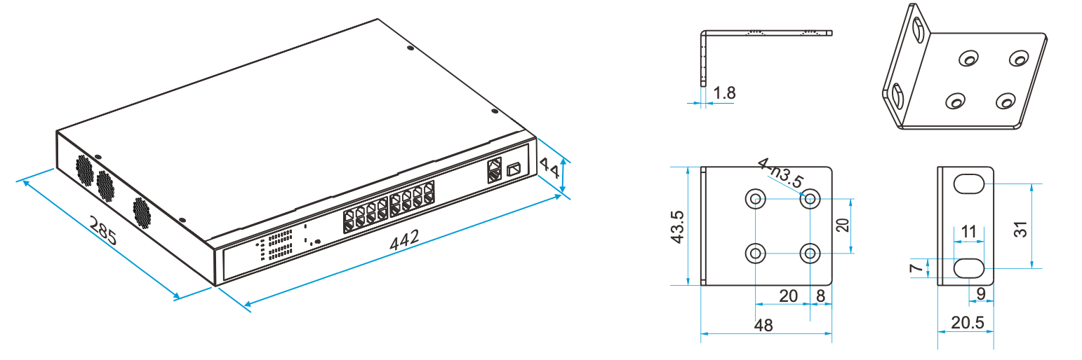 l 下聯(lián)端口速率10M,延長(zhǎng)數(shù)據(jù)傳輸距離最遠(yuǎn)250米。