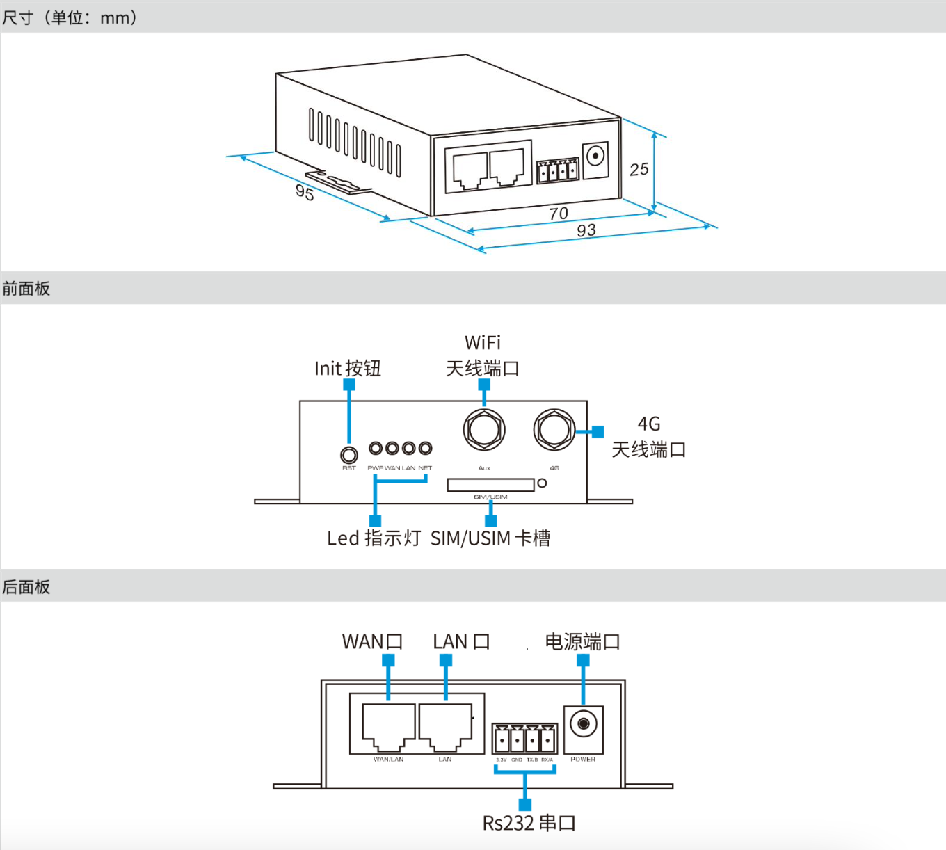 該產(chǎn)品采用高性能的 32 位專業(yè)網(wǎng)絡(luò)通信處理器,以嵌入式實(shí)時(shí)操作系系統(tǒng)為軟件支撐平臺(tái),為用戶提供安全,高速,穩(wěn)定可靠的 3G/4G無(wú)線路由網(wǎng)絡(luò),并支持 2個(gè)以太網(wǎng) RJ45 接口和通信串口。