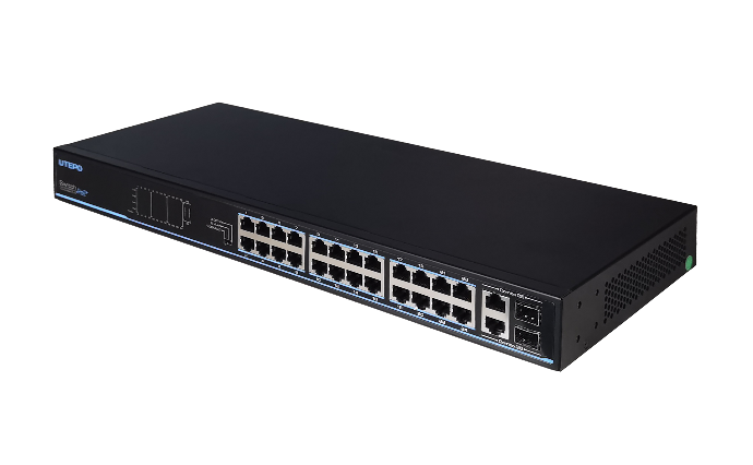 ● 24個10/100 BASE-T PoE+ RJ-45 (Auto-MDI/MDI-X)