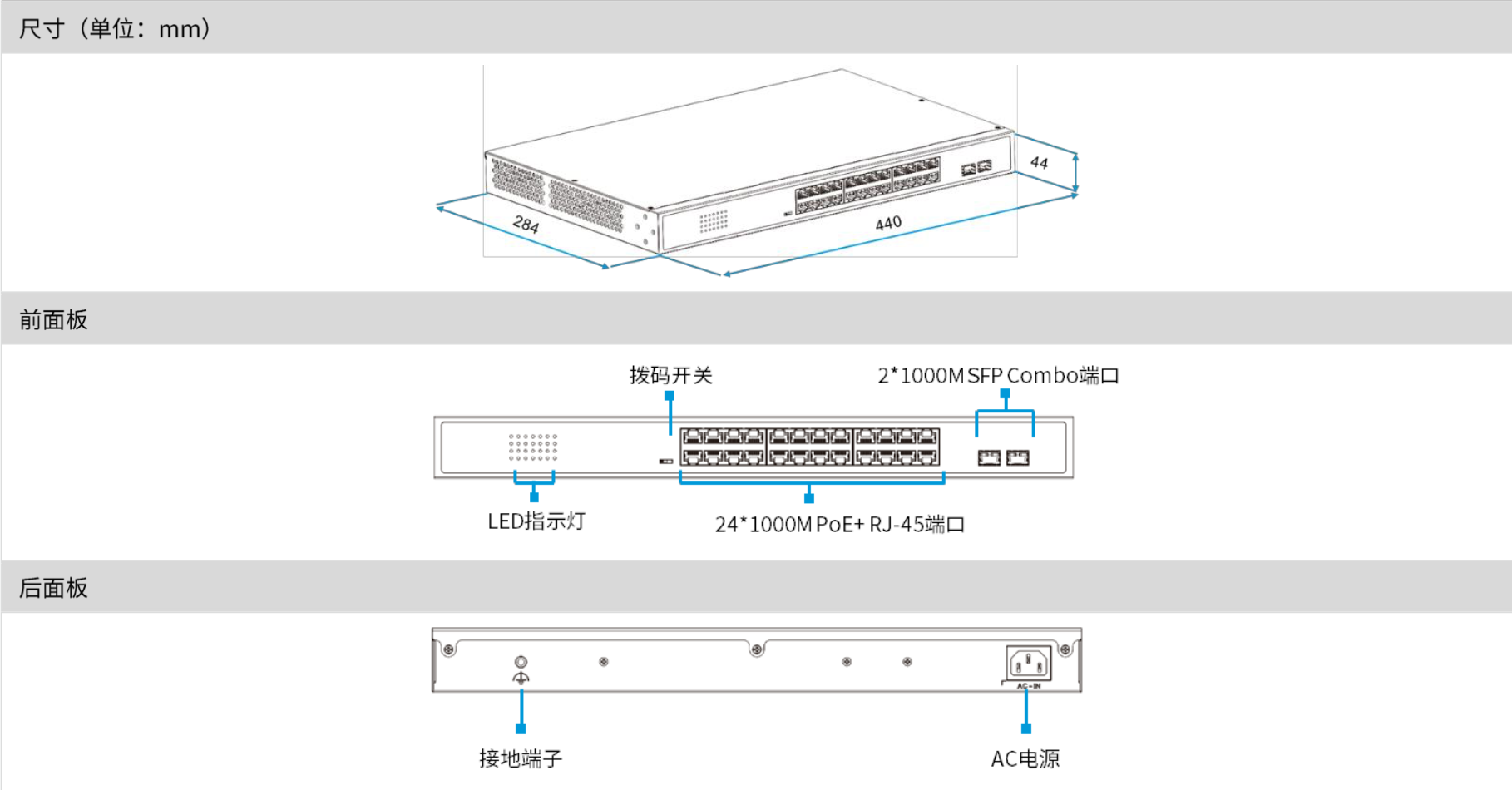 該產(chǎn)品是18/24口全千兆 PoE 交換機(jī)。